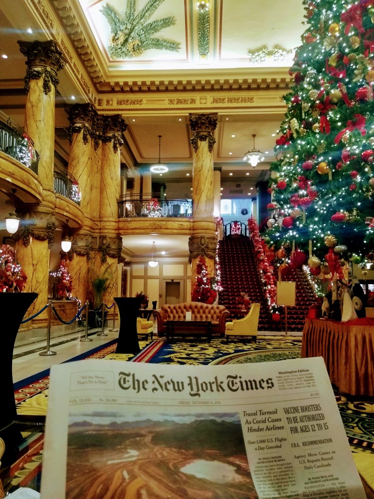 View: reading the paper in the lobby of the Jefferson on the last day of the year.