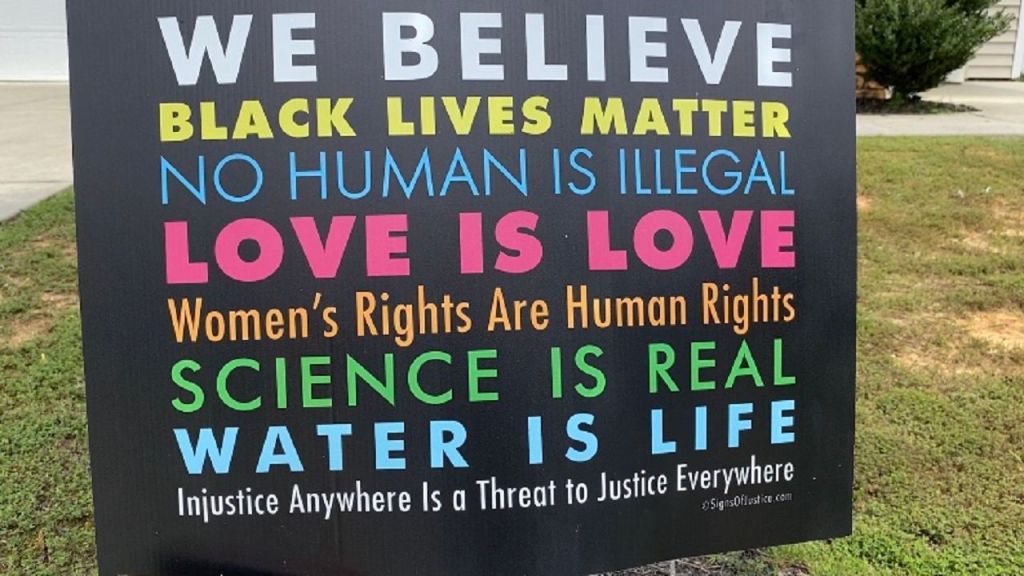 Harry: In all the other claims on the sign, I get the reference. You’ve got your race thing, your immigration thing, your gay thing, your feminist thing, your evolution thing. But… is a there a water thing?